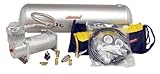 Our best onboard air system. Includes a 150 PSI, 100% duty compressor and a 2.5 gallon tank that can power your air horns as well as other accessories like air bags and small air tools. Also includes a quick-connect tire inflation kit with a 30' coil hose, tire chuck and storage case.Package Includes-150 PSI compressor-2.5 gallon air tank-110/145 PSI pressure switch-175 PSI safety valve-1/4" NPT drain cock-1/4" NPT compression fitting-35' tire inflator coil hose w/ carrying case-Remote mount intake filter-Mounting brackets & hardware.../ Kleinn Horns Model 6350 Onboard 150 PSI Air Compressor System & Tank / Automotive Air Compressor